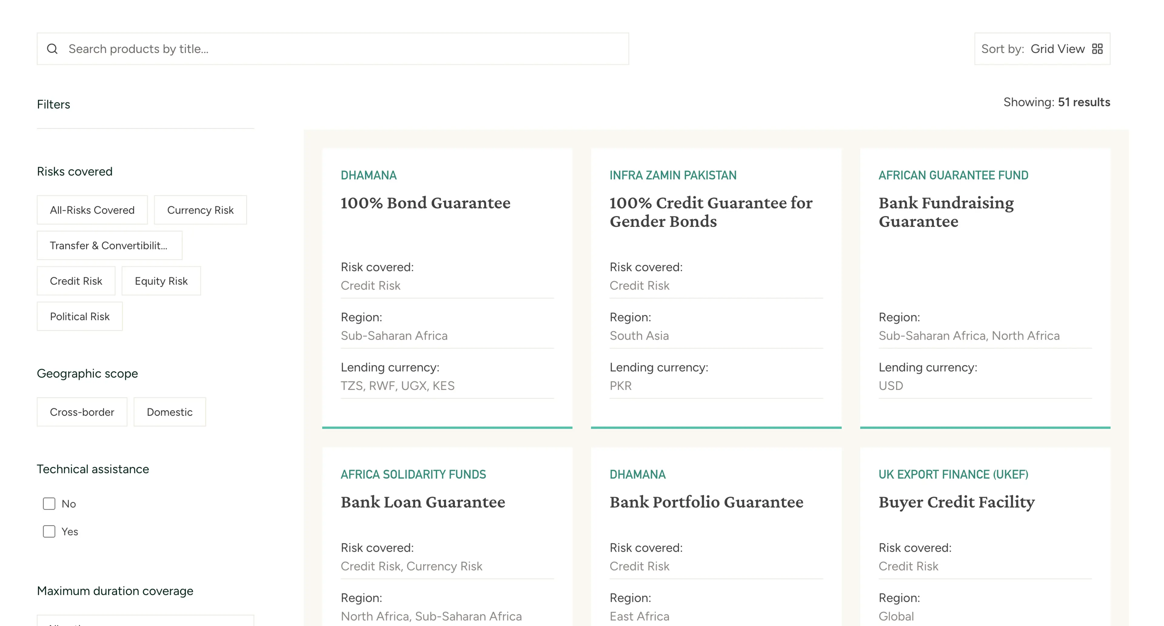 Discover, compare, and access guarantee products to unlock capital for climate investments worldwide