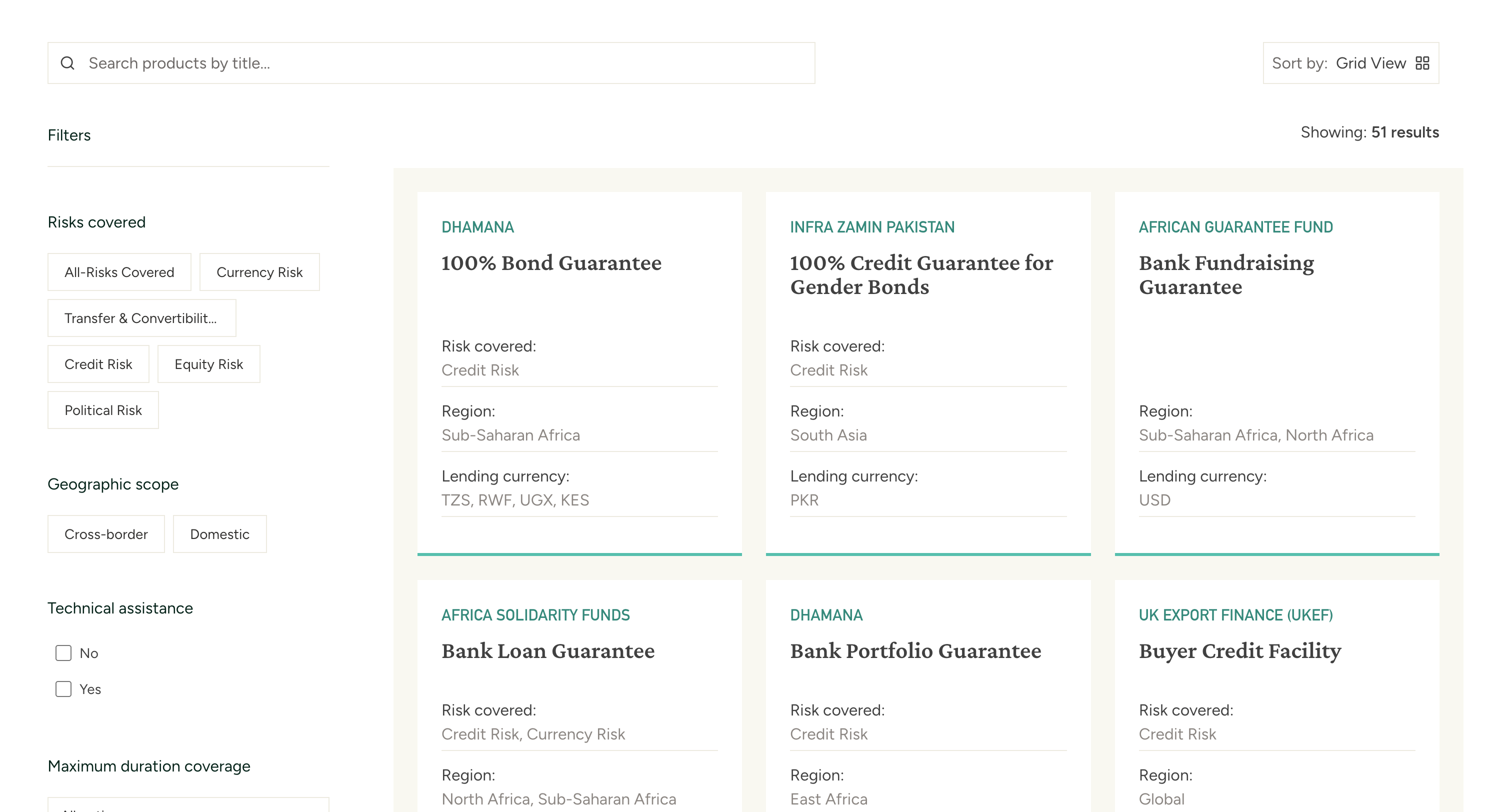 - This platform includes products from a range of providers, including multilateral development banks, sovereign governments, and private guarantors.